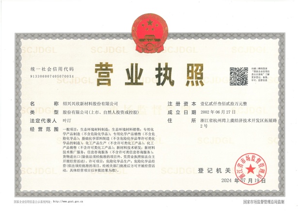 紹興興欣新材料股份有限公司成立于2002年06月27日,占地面積122畝,位于杭州灣上虞經濟技術開發(fā)區(qū)拓展路2號,現有職工200余人,專業(yè)技術人員50余人;博士、碩士研究生30余人組成的一支知識型、專業(yè)化的技術科研團隊。公司面向全球市場,專業(yè)開發(fā)電子化學品、環(huán)?;瘜W品、醫(yī)藥中間體、高分子材料等先進新材料重點領域的省級科技型企業(yè);建有浙江上虞、安徽東至兩個生產基地。目前為“國家高新技術企業(yè)”、浙江省“隱形冠軍”企業(yè)、浙江省專精特新中小企業(yè);建有“省級”研究開發(fā)中心,共建天津大學浙江紹興研究院電子化學品研發(fā)中心。